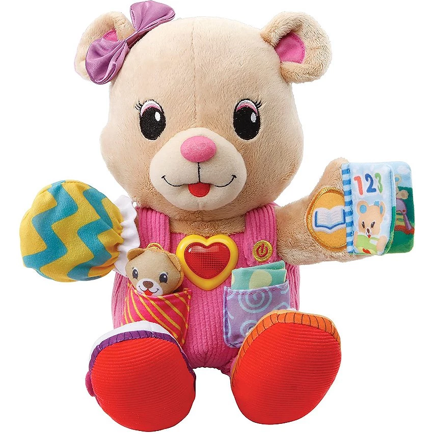 Un adorable ourson à câliner qui accompagne Bébé au quotidien avec différentes textures pour stimuler la curiosité de Bébé.Il apprend à Bébé à s’habiller et interagit avec lui grâce à ses 5 points d’interaction.Bébé appuie sur sa main droite pour l’entendre taper dans ses mains. Bébé s’amuse également à lui enfiler sa moufle